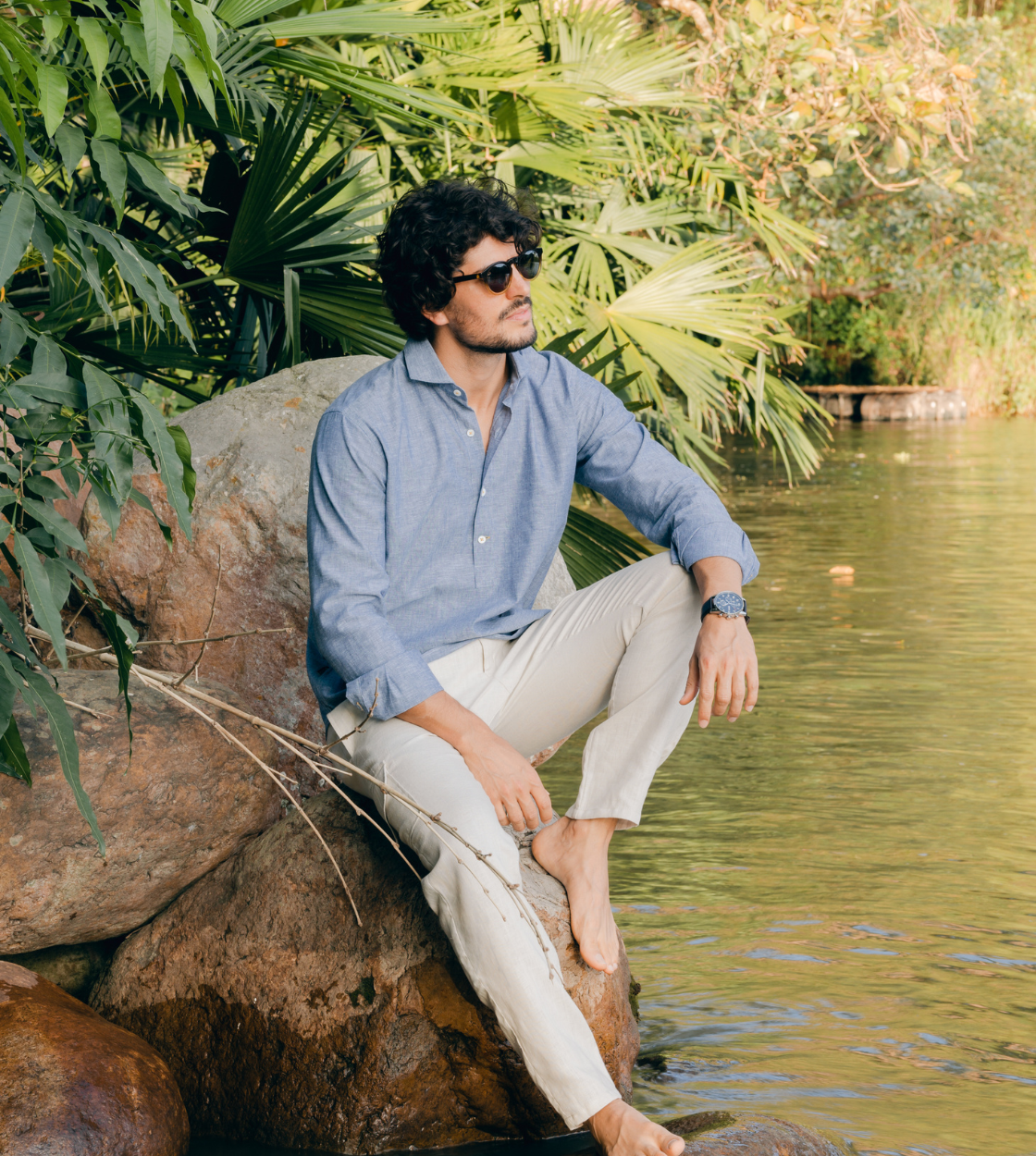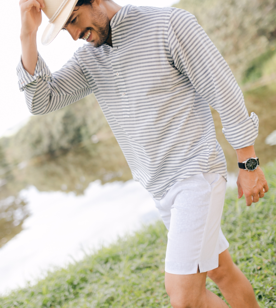 We primarily use high-quality linen in our resortwear and made-to-measure collections. We also incorporate other natural materials such as cotton, carefully selected to provide comfort, freshness, and durability.